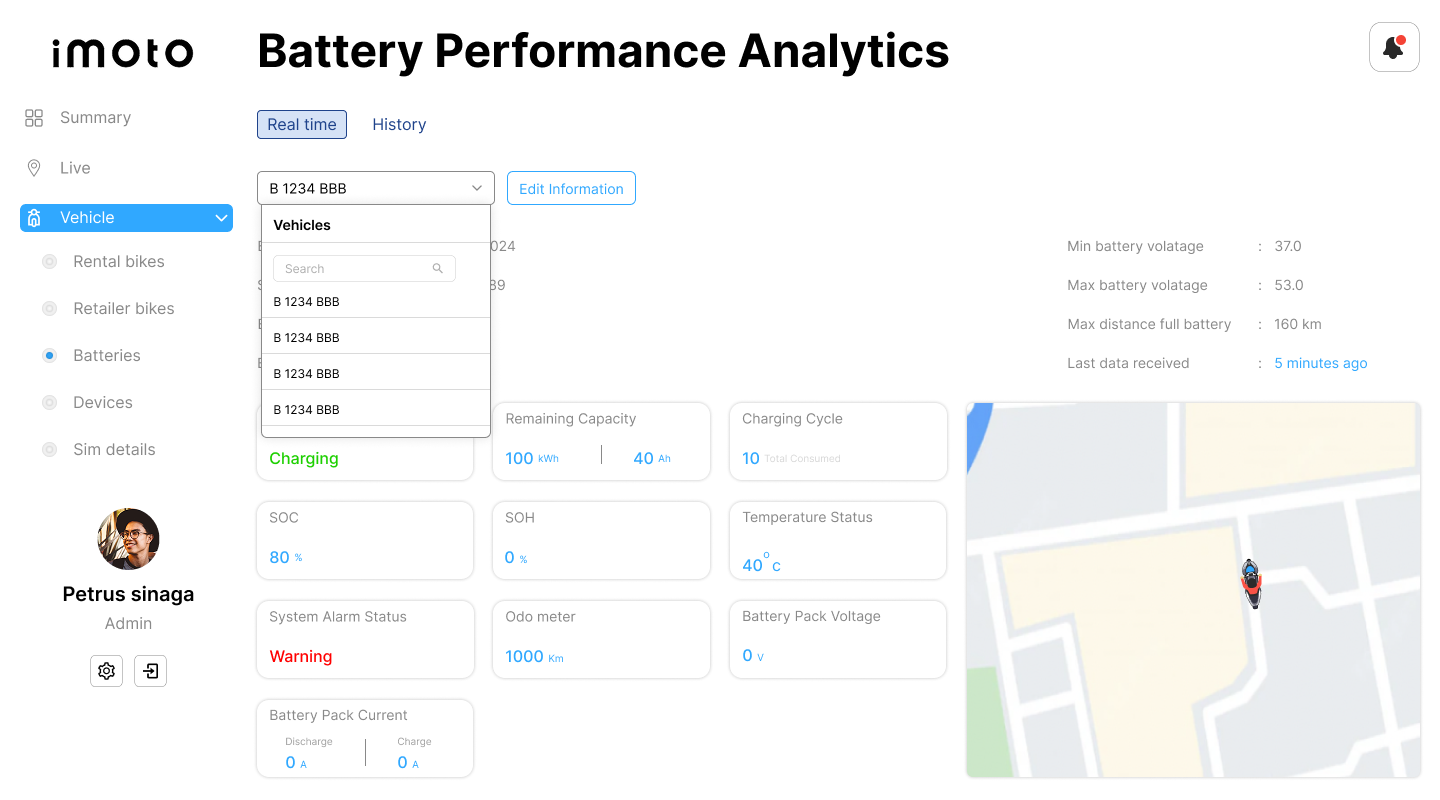 Integrating IoT data (battery, GPS, speed, status) seamlessly.