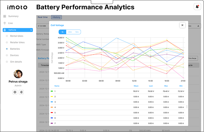 Detailed analytics on charge cycles, battery health, and energy trends.