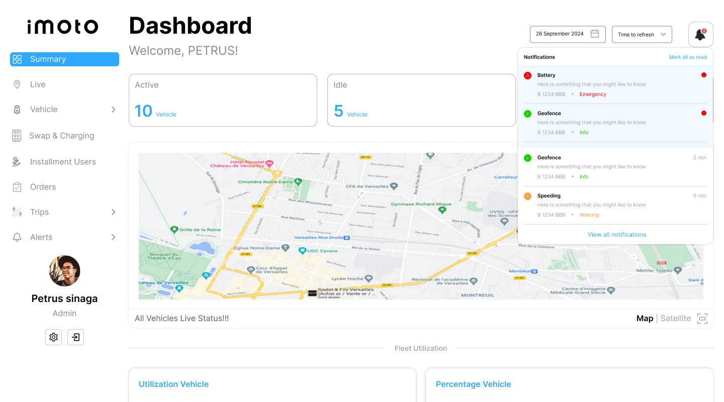 Real-Time Vehicle Tracking Live GPS with trip history and movement monitoring.